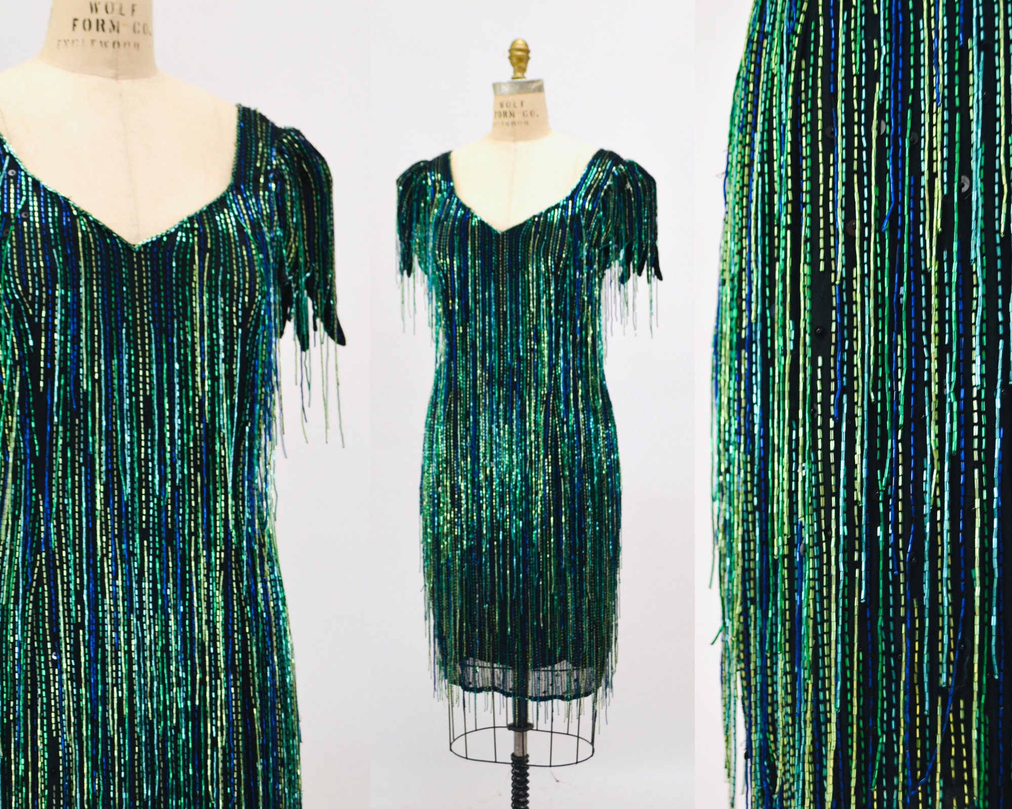 1920s Green Beaded Stella Flapper Dress Flapper Boutique